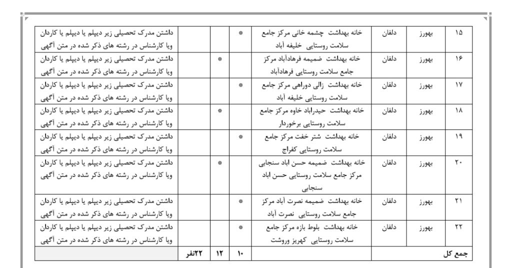 صدای دلفان- اطلاعیه آزمون جذب بهورز در دلفان به اطلاع می‌رساند دانشگاه علوم پزشکی لرستان در نظر دارد از محل مجوز صادره سازمان اداری استخدامی کشور نسبت به جذب تعداد ۸ نفر از واجدین شرایط برای شغل بهورزی به منظور اشتغال در خانه‌های بهداشت تابعه شهرستان دلفان از طریق آزمون […]
